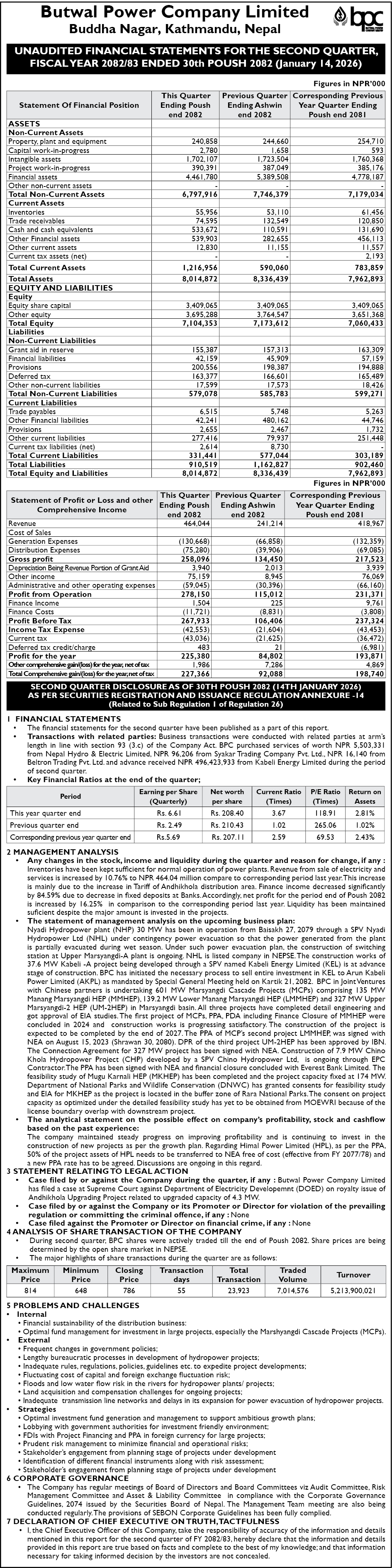 | Unaudited Financial Statements for the Second Quarter FY 2082/083 |